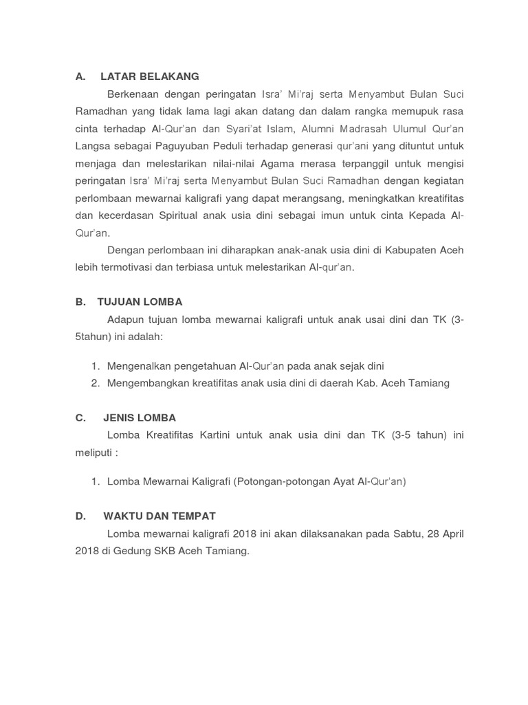 Proposal Lomba Mewarnai Kaligrafi Untuk Paud Dan Tk