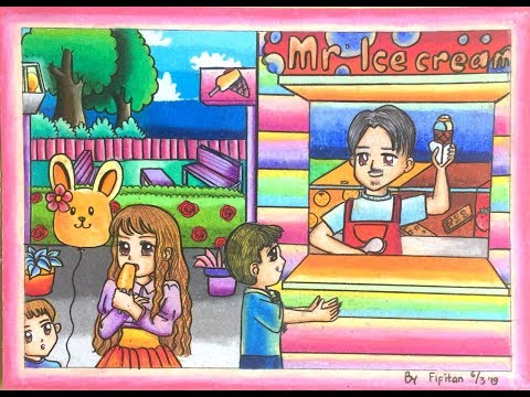 Cara Menggambar Dan Mewarnai Dengan Gradasi Warna Tema Membeli Ice